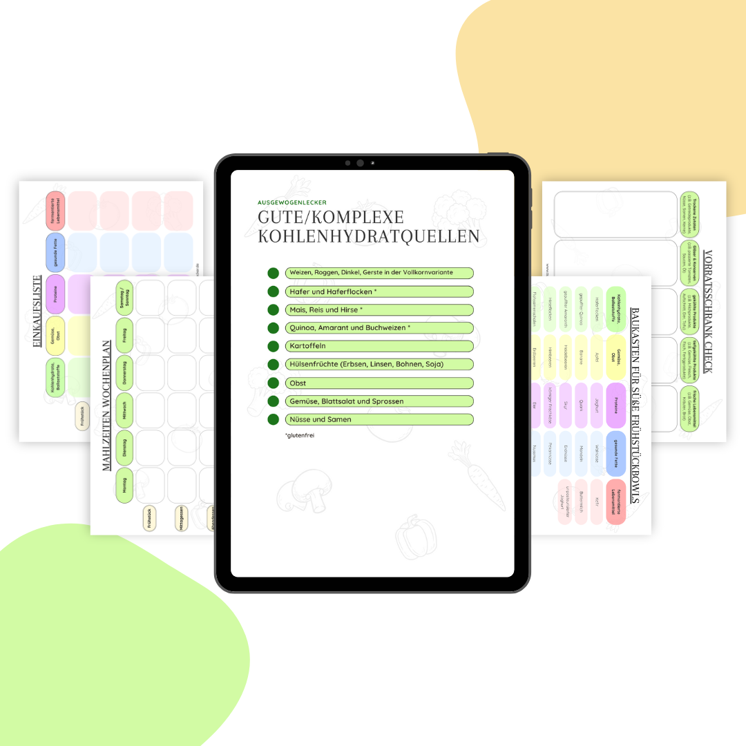 und den farblich dazu abgestimmten Lebensmittel - und Einkaufslisten stellst du dir in wenigen Minuten gesunde und ausgewogene Mahlzeiten zusammen.